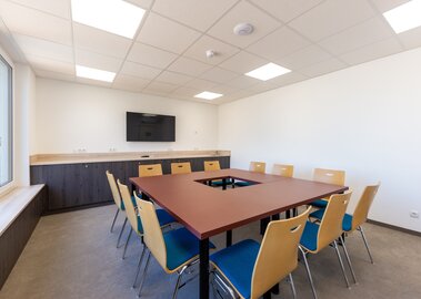 Optional: Mobile screen (55" 4K LED with audio and digital whiteboard function), flipchart, whiteboard