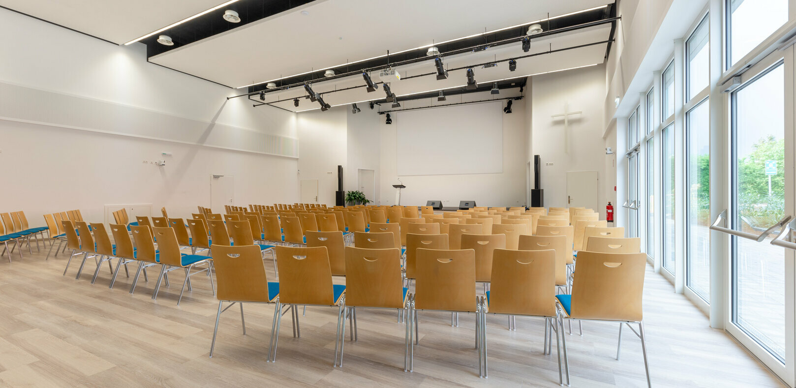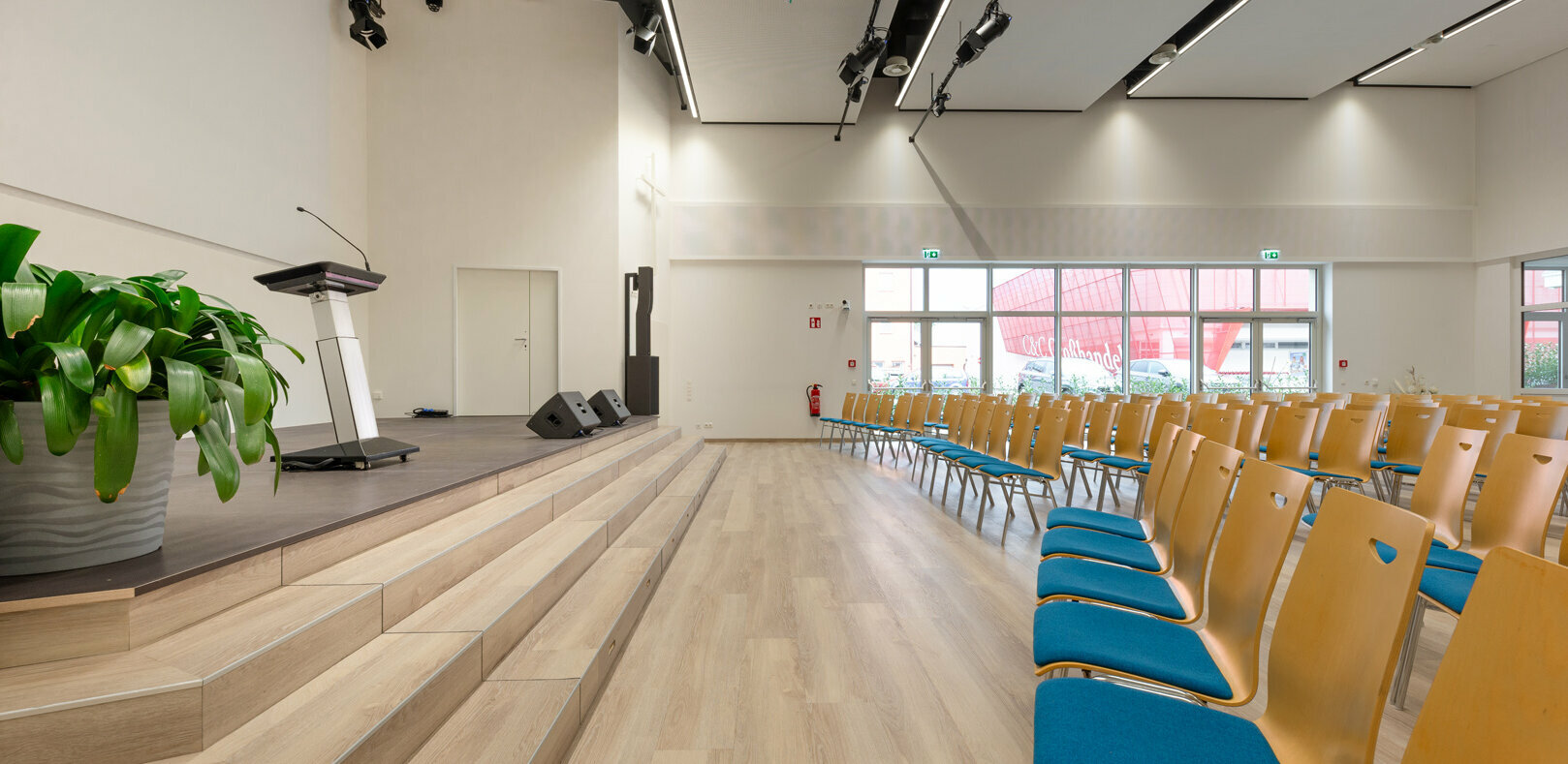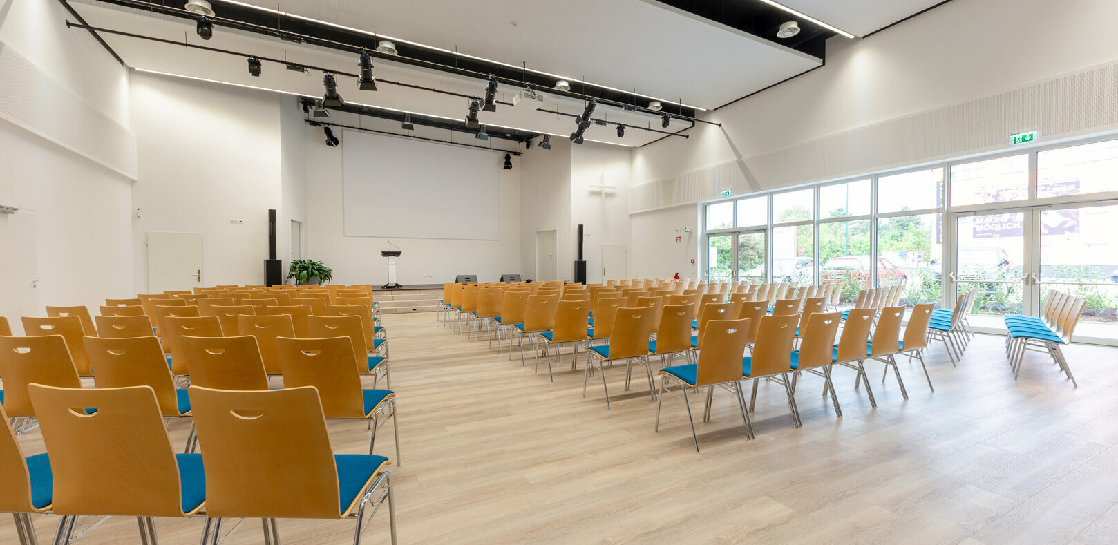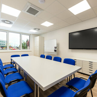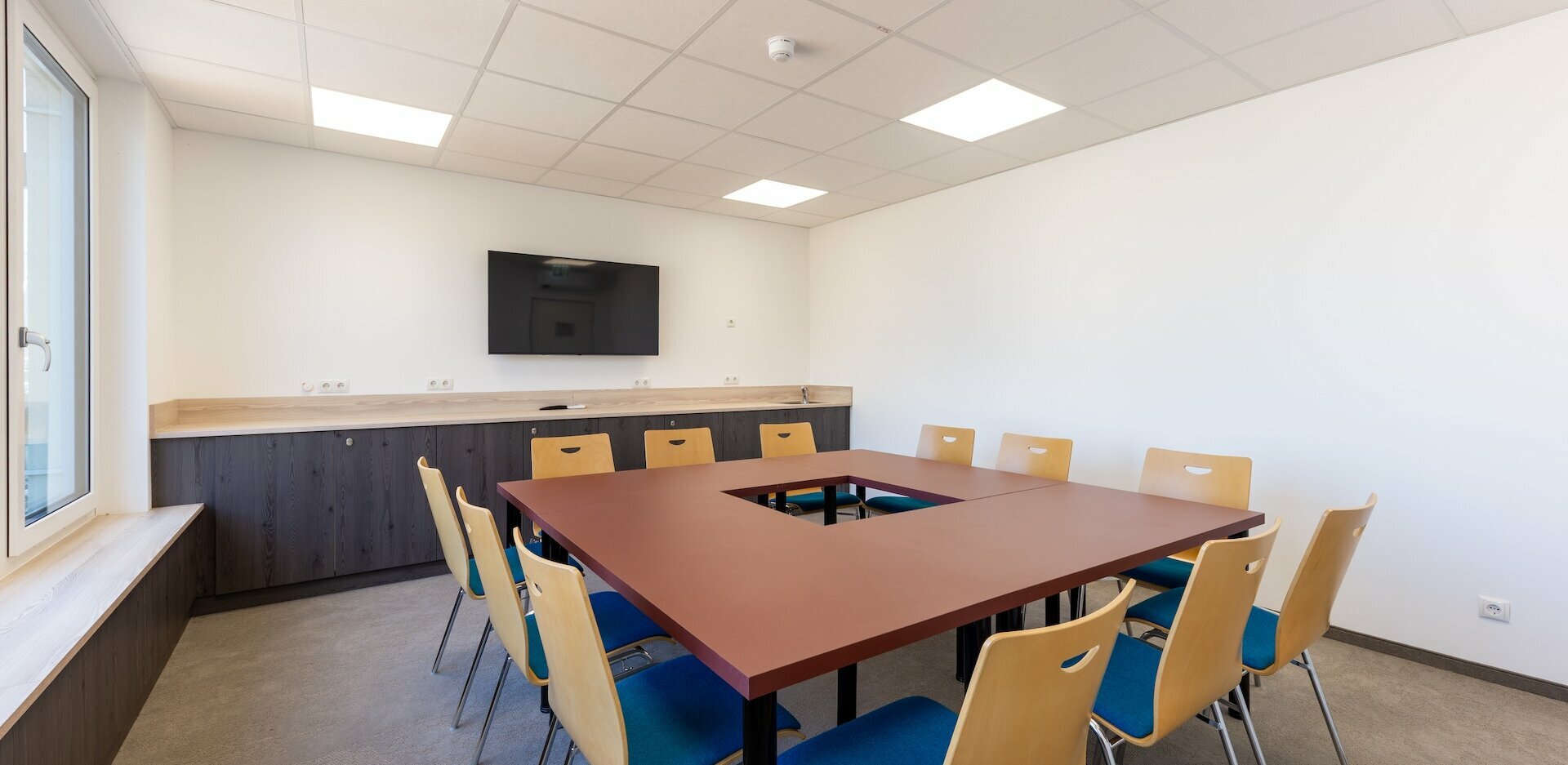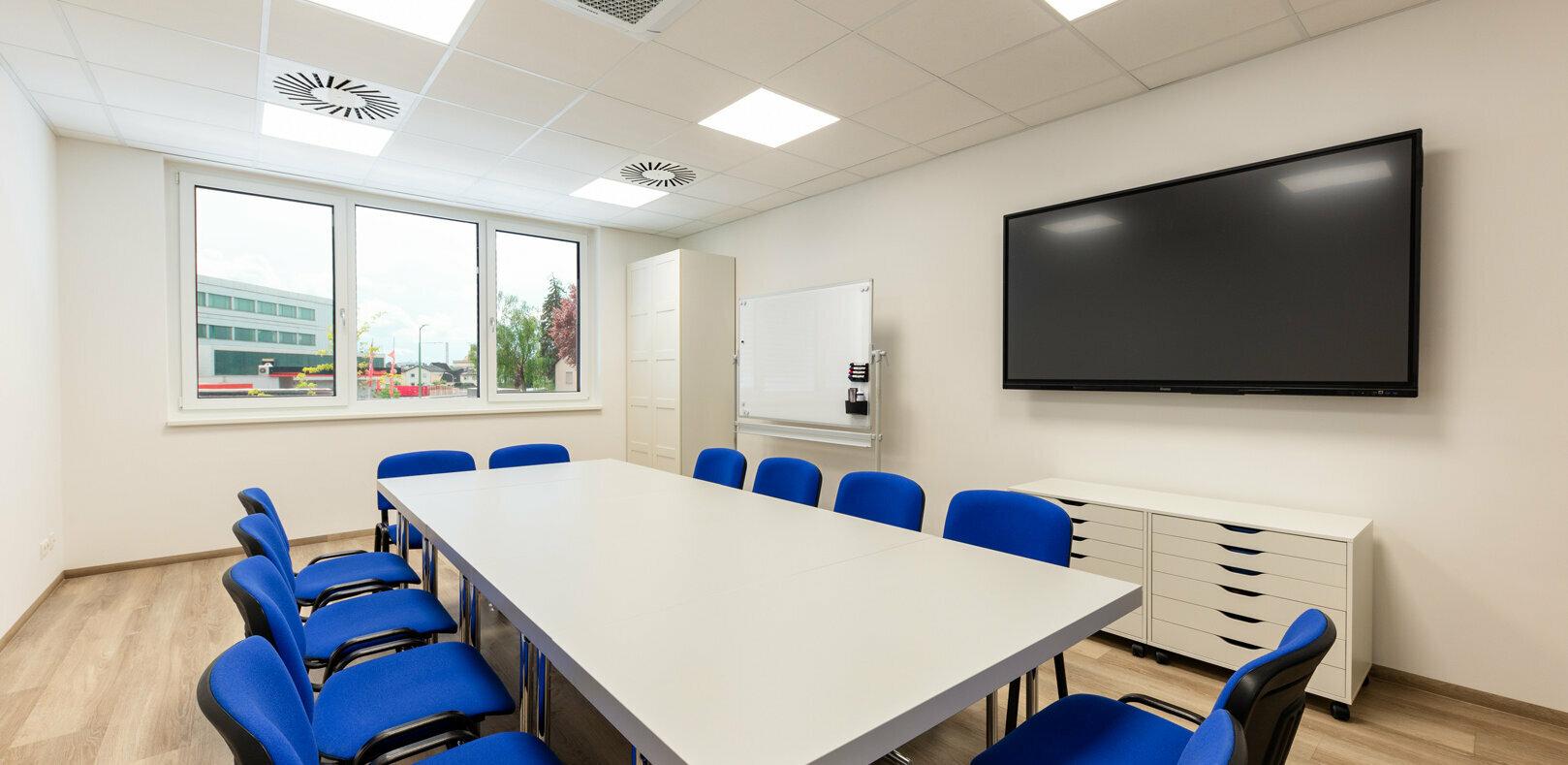 Optional: Mobile screen (55" 4K LED with audio and digital whiteboard function), flipchart, whiteboard