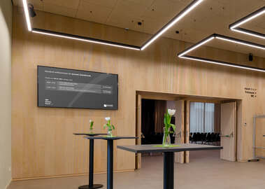 The deliberate placement of screens in the foyer of some of our novum locations gives visitors a good overview and orientation of the event on offer. Some of the advertising screens face out onto the street, enabling an exclusive external appearance that can be easily booked at any time. We are happy to design the displayed content in consultation with your branding.