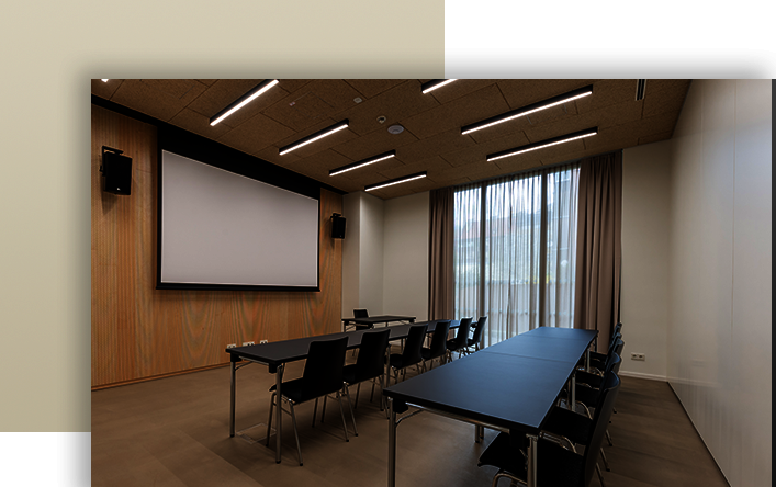 Das Raumangebot wird durch die 3 hellen und freundlichen Seminarräume abgerundet. Flexible Faltwände ermöglichen mehrere Raumkombinationen zur Umsetzung verschiedenster Veranstaltungs-Settings.