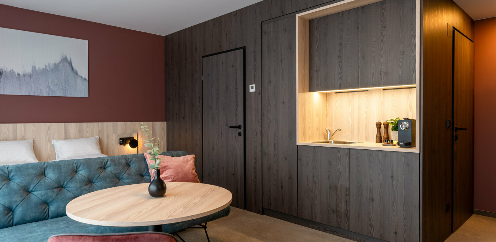 Die Nutzung der Küchenzeile kann kostenpflichtig dazu gebucht werden.